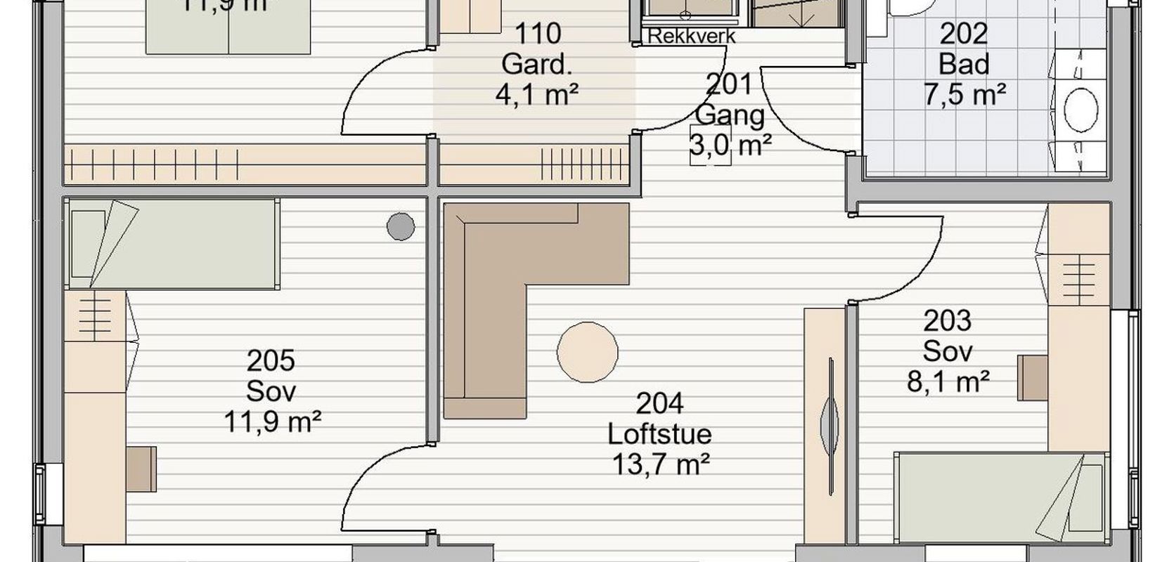 Med sine fire soverom og godt planlagte romløsninger, tilbyr Iren en bolig hvor hele familien kan trives. Alle hovedfunksjoner er samlet på ett plan, noe som gjør dette til et hjem som kan følge familien gjennom alle livets faser.