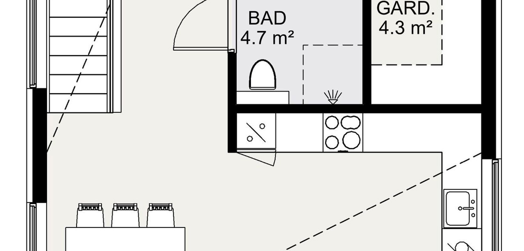 I andre etasje er det et stort rom med skrå himling, hvor du finner spisestuen, kjøkkenet og stuen. Rommet har en fantastisk takhøyde på opptil fire meter på det høyeste, og peisen er plassert midt i rommet for å gi deg glede fra både spisestuen og stuen. Kjøkkenet har en fin L-form med god plass, og fra spisestuen kan du gå ut på balkongen, som er lunt på varme dager takket være veggene på to kanter. I denne etasjen er det også et stort soverom med walk-in-closet, et bad og en bod.
